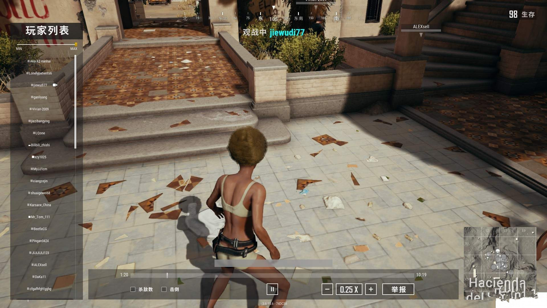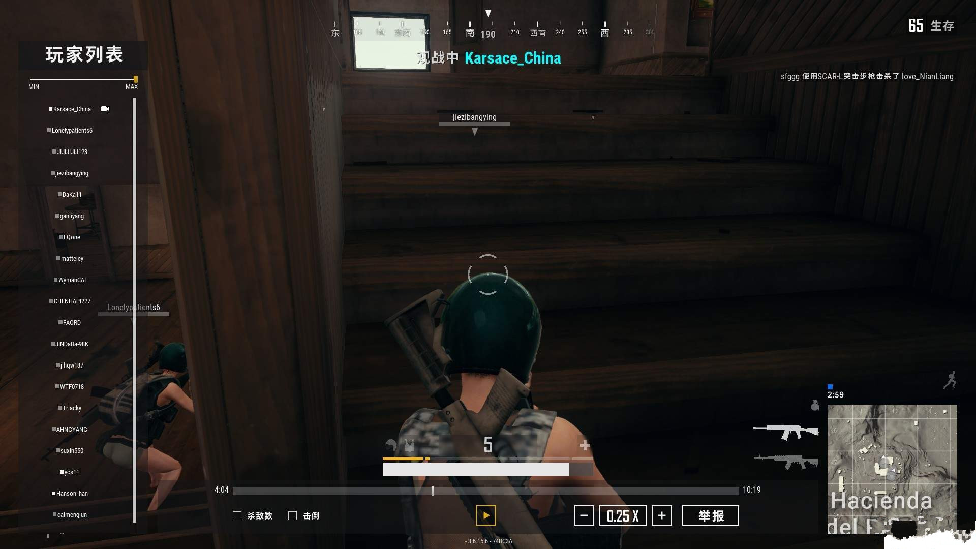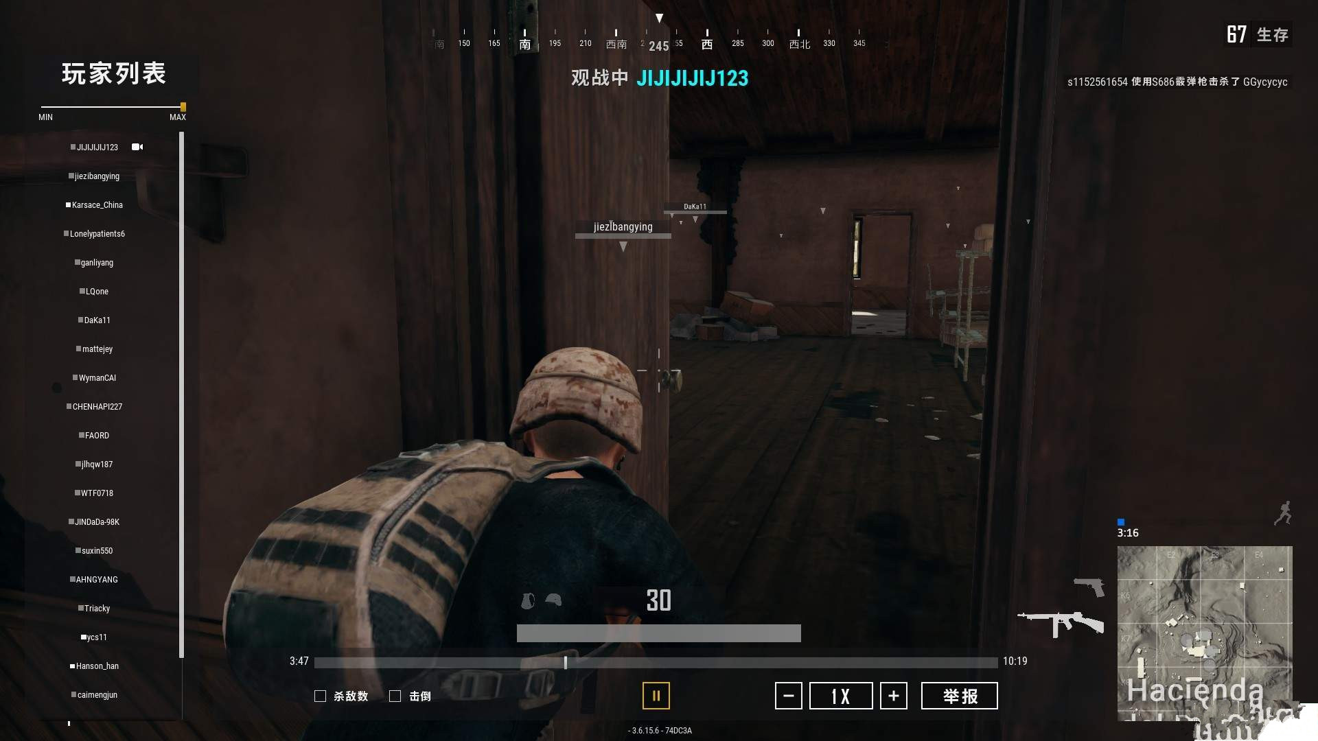 在5,6分钟左右,豪宅大部分的玩家均已被消灭,搜索残余玩家时,注意千万不要在楼内穿梭,建议蹲二楼阳台和在楼外进行搜索。主要的原因就是豪宅的地形实在太复杂,阴人的位置实在太多,而且楼内无法防手雷,视野也不如楼外的宽阔。