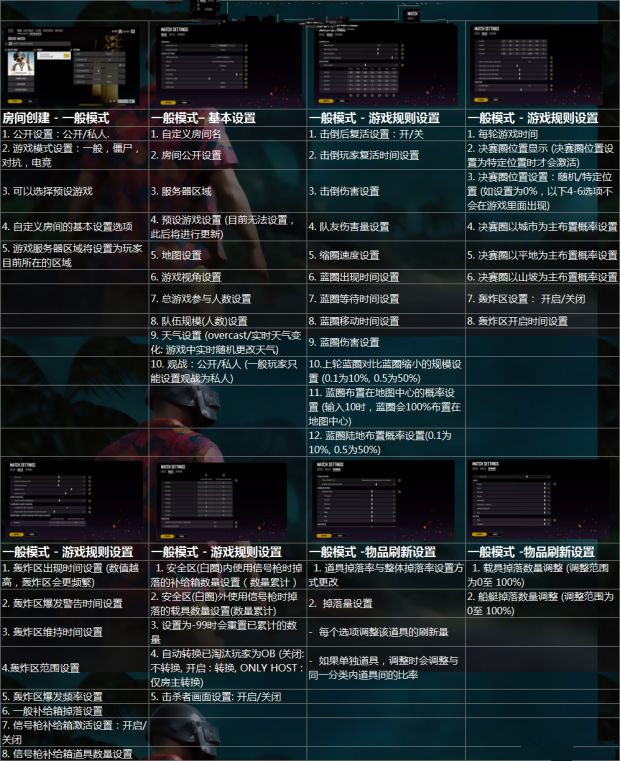 绝地求生新版本中开放了自定义房间,里面有非常多的设置,但是由于是英文很多玩家都看不懂怎么设置参数。下面小编就给大家看一下各个选项的翻译,让大家可以开启自己的自定义房间,愉快玩耍。
