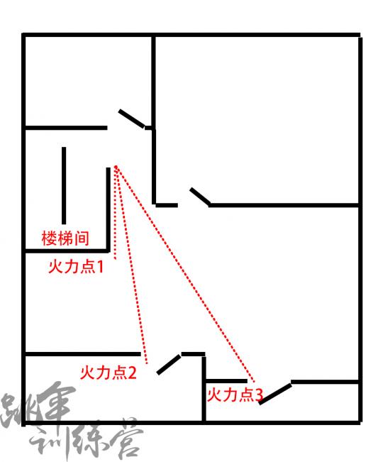 强攻还需投掷物配合,步步为营,通过投掷物配合将敌方从可以侧身拉身位出枪威胁到你的敌人赶走,紧接着上楼,逐层清理即可。在扫楼层时,切不可大意,多看门后,说不准就藏有LYB。