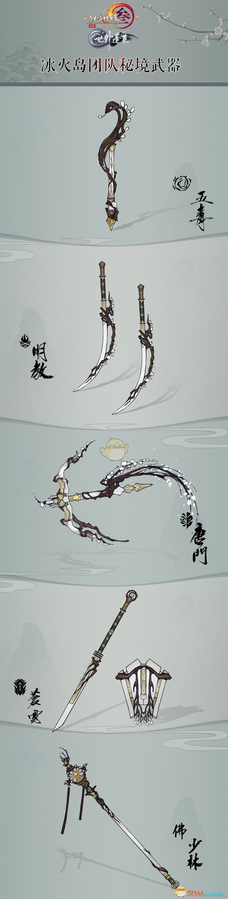 除了诸多颇具考验侠士应变能力以及趣味横生的秘境玩法外,2100品的25人冰火岛团队秘境武器于今日正式爆料!本次的25人团队秘境武器,在设计上选取中国画的梅花画法,还原国粹,古色古香,浑然天成!同时,在“世外蓬莱”的新资料片中将取消10人团队秘境随机掉落可兑换当前版本校服装备的设定,取而代之的是开放以侠义值兑换2100品以及2300品装备的全新渠道。侠士们可通过努力以完善自身装备更快的进行成长提升,而非再将希望寄托在运气上。