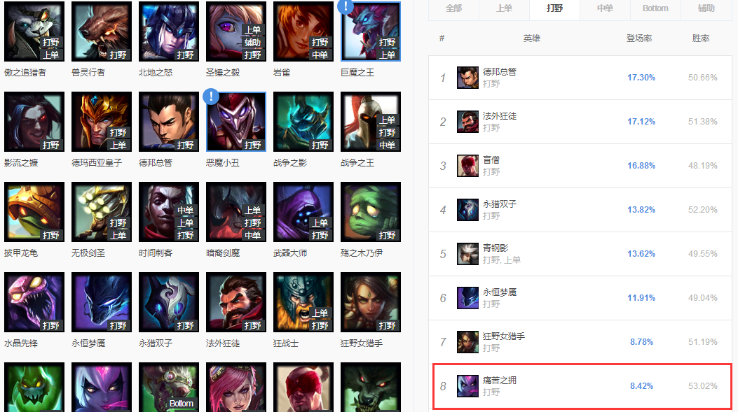 而在打野的登场率方面,寡妇虽然不是T1级的英雄,但也排在了第八,虽然比不了那些热门打野,但也要比其他打野好很多。