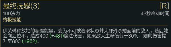 而R技能则更加夸张,对于生命值低于30%的敌人,R技能的伤害能提升到将近两千,基本上是是必死的。