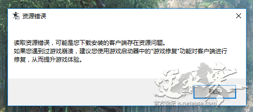 如果您在体验逆水寒的时候,有客户端卡顿、崩溃的情况,或者遇到如下报错提示,请检查客户端资源完整度。