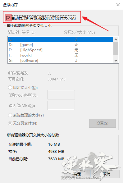 如果您使用了一些第三方优化工具(比如各类电脑管家),请留意这些工具是否会修改虚拟内存设置,以免导致您的设置失效。