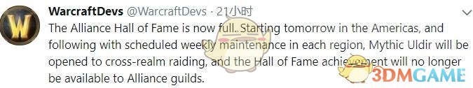 蓝推:联盟名人堂满了,美服明天开始,其他服务器在维护之后也都将开启史诗奥迪尔跨服!之后就无法获得名人堂成就了