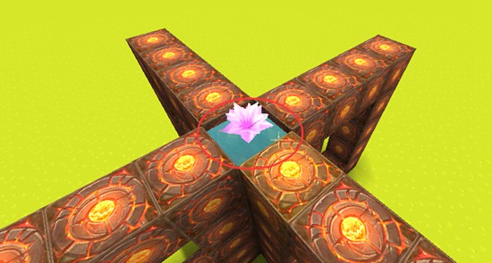 然后在中心一格放入一桶水,在水面上放朵荷花装饰用(可放可不放无影响);