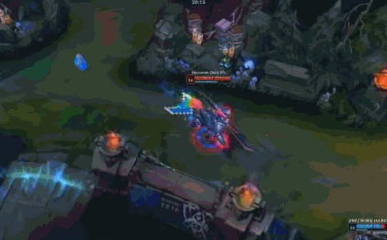 1. E技能蓄力。人马的E技能是位移距离越远伤害越高,因此赫卡里姆开启E技能后可以原地踏步积累伤害,之后一脚踢出去一发入魂。