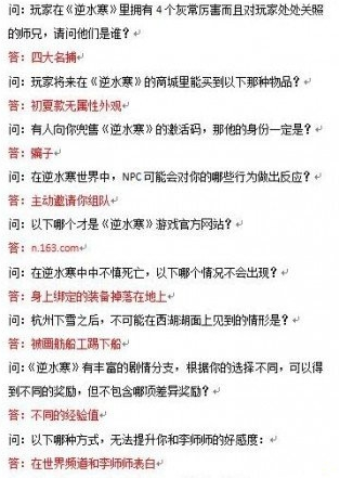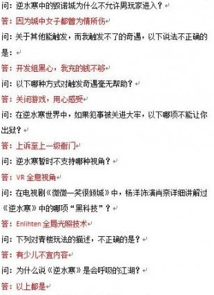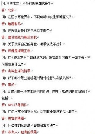 《逆水寒》科举活动答题汇总