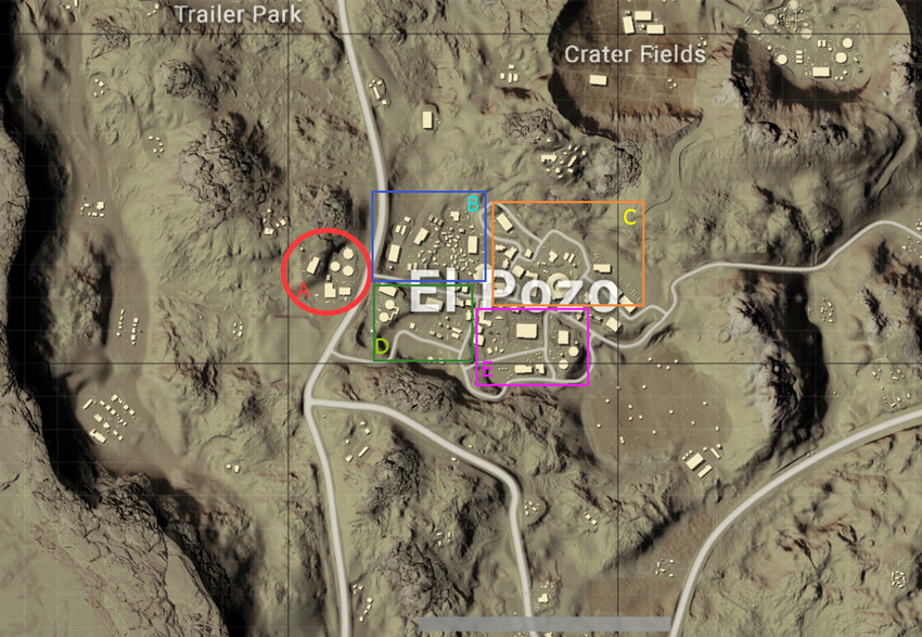 位于EI城最左边的坡上,物资可以提供两个人份的武器装备,在搜集完装备物资后,可以考虑通过下方的刷车点进行跑圈转移,也可以抱团瞧瞧潜入到区块B区、块D边上的建筑物内进行索敌、收包。