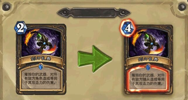 如果说其他卡牌的削弱是影响了一两个卡组的话,那么战士的这个小斧头削弱就是影响了整个职业了,从2费最强变成3费最弱,战士在前期也没什么解场手段了,以至于现在的战士都是用各种嘲讽苟活。