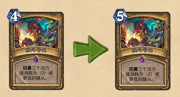 战斗号角开始很多人都觉得强,而后偶数卡组的出现这张牌的价值到了一个顶峰,4费抽3张打3张还是定向的,你们觉得超模多少?这让当时的偶数骑成了快攻第一卡组,当然最终也没逃过被削弱的命运,变5费后在奇数骑里面召1费怪也没那么IMBA了,现在也没几个人用了。