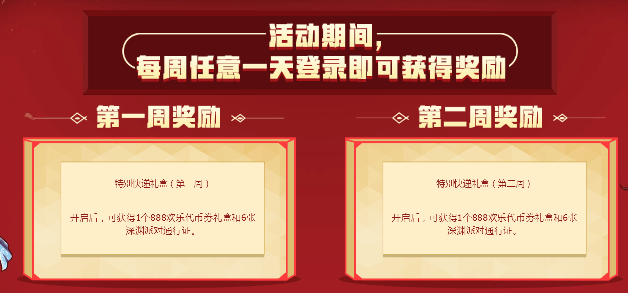 消失已久的特别快递活动又来了啊,这次的特别快递还是888代币券和6张深渊票。虽然说这奖励并不是很丰富,但重点是这个奖励只要每周任意一天上线就可以免费领取啊。而这活动将持续2周,也就是说玩家们可以白得老马1776代币券啊,这对于多号党来说简直是赚翻了。