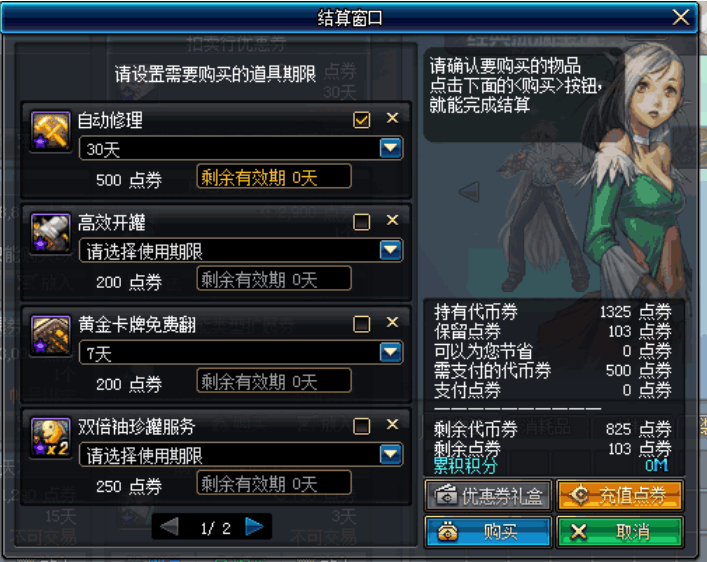 虽然说这送的代币券并不多,但是合理使用的话那么也是非常划算的。如果你是一名搬砖党的话建议大家全部买自动修理吧,要知道一把90级的史诗武器修一次就得几十万啊。这几十个角色下来一天光修理费就得几百万了,而这个自动修理一个月也才500点券,足够开3个月了,这可以轻松省下好几亿了啊,老马这回要亏死了啊。