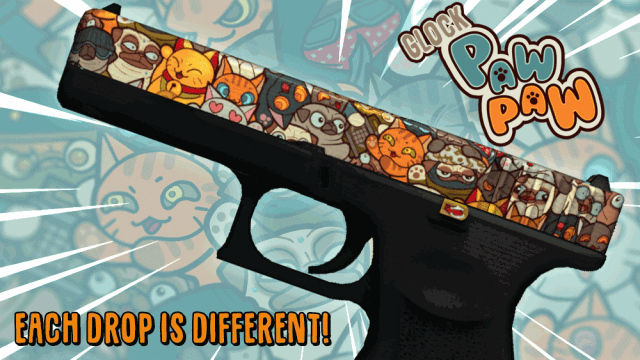 当各式各样的小猫小狗充斥你的荧屏,你还有心作战吗?这个系列的皮肤可谓萌到爆炸,风格各异,造型不一的猫与狗填满枪身,并且图案是半随机的,你可以像挑选宠物一样慢慢挑选,直至找到合你胃口的一款。据作者介绍,这个系列的皮肤,一共采用了52种不同的猫狗造型呢。