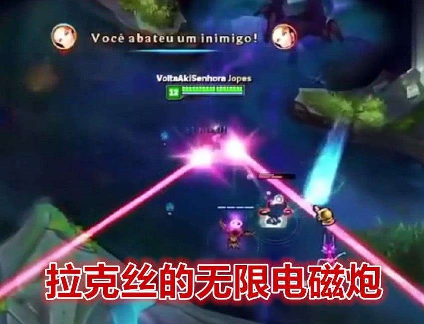 第四位:拉克丝的无限电磁炮,拉克丝这个游戏一共出过两次BUG,其中一次BUG就是拉克丝可以在大招施法时间内放出多条激光,但是事实上只有最后放的哪条激光才造成伤害,而其他的激光只有动画没有伤害,所以只是一个显示BUG,影响并不是很严重,而另一个BUG就是和娜美同期一样的可以无限使用大招。