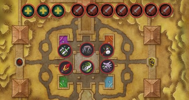 部落永远在下方,已用两个部落LOGO标注在下方地图上。