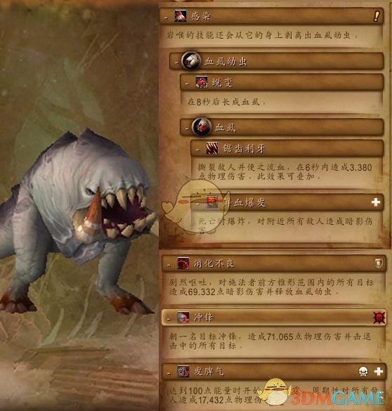 2号BOSS被感染的岩喉,长相和技能都有点恶心,消化不良会剧烈呕吐,造成锥形伤害,会吐出一堆蛆虫,这些蛆虫要第一时间踩掉,击杀蛆虫会爆炸并对周围玩家造成伤害,不杀的话又会带来持续伤害。冲锋也会随机点名一名玩家,并在冲锋的路径上留下驱虫。这里有一个小技巧可以推荐给大家,DPS可以先卡一个角落来输出BOSS,这样就能卡住BOSS的冲锋,地上的蛆虫会容易踩,让近战坦克和奶的压力小一点。当boss达到100能量后就会发脾气,造成aoe并留下蛆虫,这个时候更需要加速踩掉蛆虫。总的来说,建议大家卡一个角落或者先清一片场地后再打BOSS,正面躲开冲锋,蛆虫第一时间踩掉。