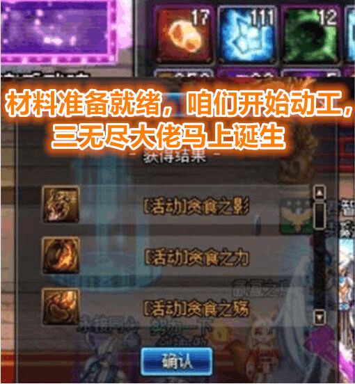 好的,十周年活动做完了,贪食礼盒也换出来,材料都也准备好了,咱们开始进行下一部的操作,看看这位玩家到底是什么样的骚操作,就这小编看到是不服不行,没有恍惚怎么了,三无尽带到死,恍惚是什么“辣鸡”