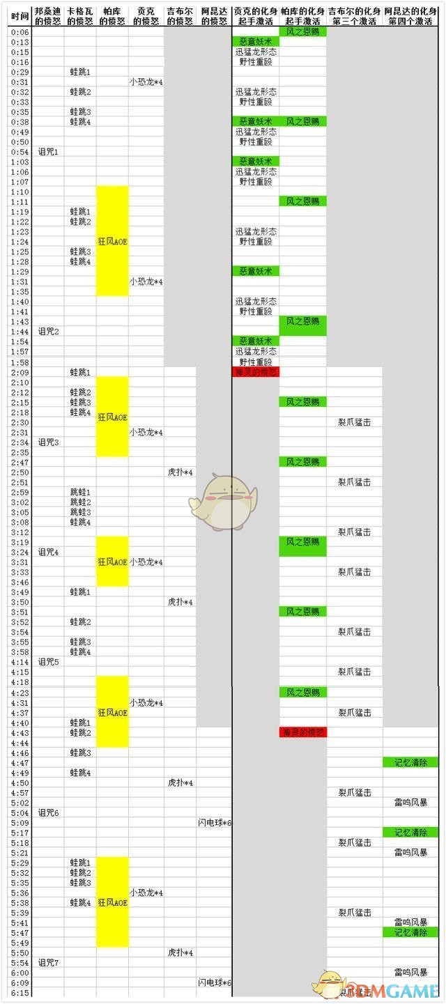 迅猛龙追人:起手30秒刷4个,之后每分钟刷4个。点名追人没有仇恨,每20秒换一次点名。靠近被点名的人就不吃控制减速了,假死隐身会导致它换点.