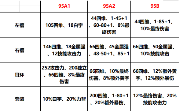 95SS特殊装备总共有5套,其中有两套是给奶妈和奶爸使用的,主要看C的三套这里的95B指的不是普雷raid的特殊装备,而是另一种进阶装备其实也可以叫95AA或者95A吧。