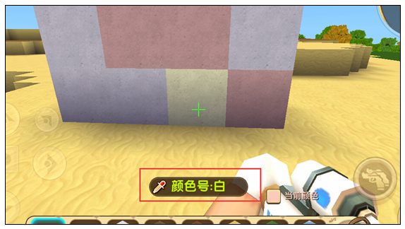 为了方便大家准确提取所需的颜色,我们新增了彩弹枪、彩蛋、小彩蛋的取色功能。只需瞄准被染色的方块点击鼠标的“中键”就可以快速取色了。