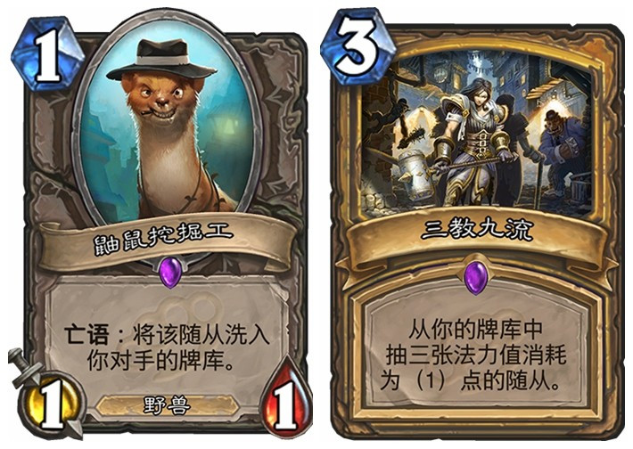就慢速来说,这张卡的防御性比焦油差一些,需条件触发,还要前期一定抽到,否者大概率被白吃。这卡可以对比加基森版本的二流打手,也是需要对面站场数量的特效触发,三流是减2费,虽然3个随从的条件更苛刻,但自己身材可以,减费可赚节奏,所以曾进入各种慢速卡组的构筑,而好斗的侏儒,谨慎看好吧。