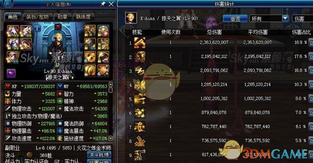 偏一二觉的轻甲、与整体均衡的板甲,按我在前面所测试的[一轮技能伤害占比]来计算,将总伤害设为100%。我的防具是90板B,不存在因技能等级加成而引起的伤害分布变动问题,同时右边所有增加技能等级的配置,均可在95级版本中沿用,所以这个伤害占比是相对客观的。