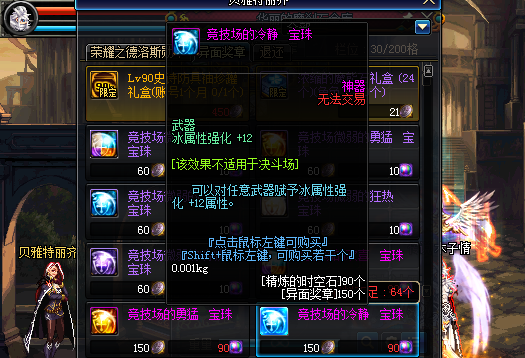 帝国竞技场里兑换最快捷的道具,只需要打几天就可以兑换,一个12点武器属强宝珠也就花费700多万游戏币,如果只是想给小号附魔一下,可以首选9点属强宝珠,价格仅仅80多万,兑换属强宝珠在选择上非常灵活。