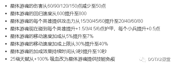 大牛一直在加强,而且是在往核心方向加强,看来冰蛙是希望大牛作为核心位置出场。大幅度的增加的2技能所带来的提升,包括自身的护甲、移速、攻击力、持续时间等等。配合上天赋的话,大牛的魂中后期如果能c到三四个敌人,攻击力随便就有五六百了,自己有护甲加成又肉,冲脸大哥完全没问题。何况25级天赋魂回来自带8秒魔免,配合bkb的5秒,后期稳稳的十来秒输出环境。
