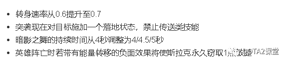小黑的光环重做了,原先的加攻击力变成了加攻击速度,这其实是削弱了小黑阵容的线上能力,远程英雄前期很依赖黑弓光环的攻击力来建立线上优势,前期无法建立起优势,黑弓体系能不能拖到后期还要另算。