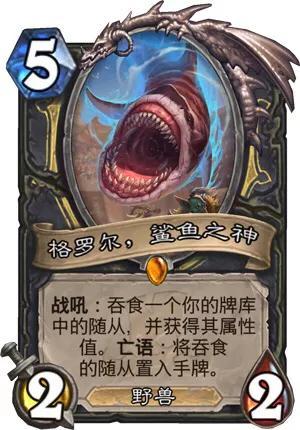 战吼:吞食一个你的牌库中的随从,并获得其属性值。亡语:将吞食的随从置入手牌。