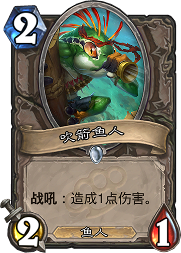 看它的模型,配合正常英雄技能的打1站21,效果等同于吹箭鱼人,人家还能过墙。和冠军包的击剑教头特效,英雄技能减2费,几乎一模一样,身材亏的差不多(3费同段位的铁炉堡火枪手同样完胜)。带这张卡,你甚至不如带小精灵,配合英雄技能一下,2费打1站11,可能还更灵活……