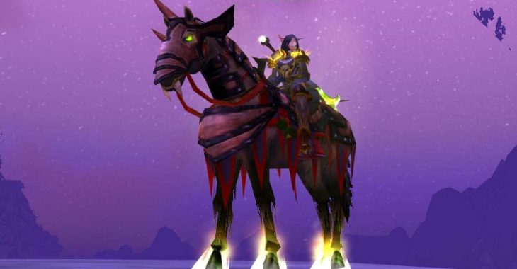 无敌的故事相信也是不用赘述了,是阿尔萨斯的一匹非常心爱的马。外形在当时也是非常帅气的,获取难度非常大。当年只有很多能力出众的玩家或是团长、金主才有机会获得。再后来改成几率掉落后,不少玩家也是非常辛苦的每周像上班一样的去拜访巫妖王。