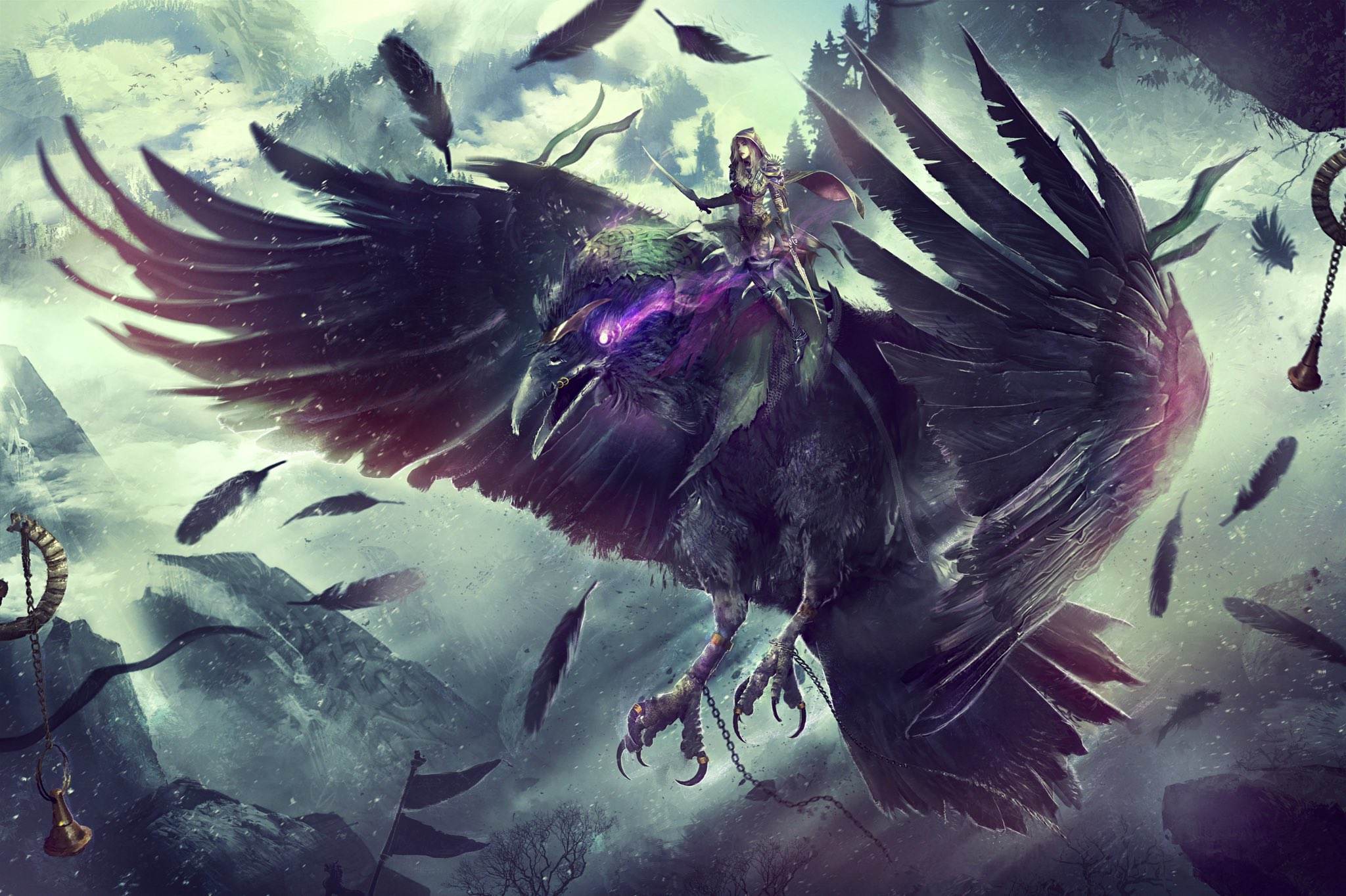 很久之前,乌鸦之神安苏受到诅咒,失去了飞翔的能力。安苏消失在阴影中,随后就成为了许多无法飞行的鸦人流亡者的保护神。