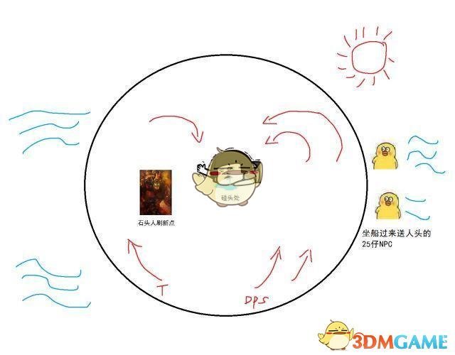 开场T走左边,另外2个DPS走右边。