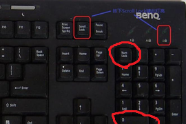 按住0键位不要松手,然后锁掉小键盘就是7号键上面那个