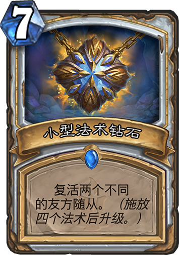 就竞技场来说,这是一张烂牌,就模型来讲,打2张法术才能用出来,至少要打5个法术才能不亏费的标准出怪,对现在的低魔版本的竞技场来说,压力山大。这张卡如果前期抽到会卡到郁闷,玩家也不会单纯为了减费而放没有必要的法术,收益也完全不如牧师法术石的效果爆炸,总之竞技场看到这张卡请圆润的避开。