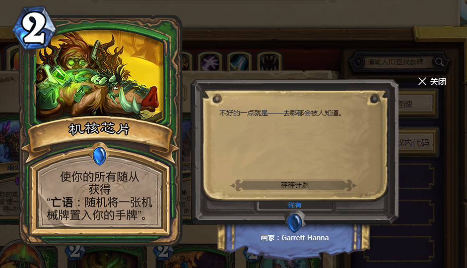虽然在砰砰计划中加入了许多高质量的机械随从。但是并不是所有的机械随从的质量都非常好。比如,万一给你来几张地精炸弹,那岂不是瞬间爆炸?SO,这张卡牌依然是到了一个看脸的时刻了。你是否能从这其中找到几张属性比较好的机械随从?