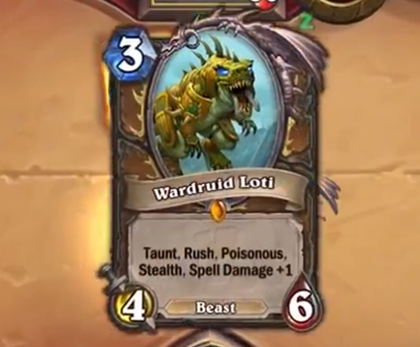 首先是德鲁伊的橙卡,本身只有312的属性,看上去弱爆了,但是有4种抉择,都是变成野兽,分别是314的法伤加1,316的嘲讽,342的突袭和312的剧毒潜行,感觉每一个的效果都不是很好,但胜在灵活。