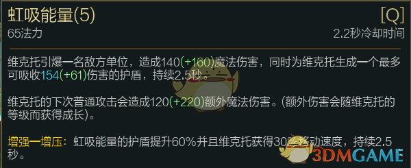 维克托应该是最契合护盾猛击这个符文的英雄了,特别是上单维克托,叠满45%减CD,Q技能仅有2.2的CD,每一次使用Q技能,都能获得护盾猛击的效果。超短的CD,超强的效果,维克托也凭借护盾猛击这个符文,胜率达到了接近60%,这个版本的上单维克托已经接近无解。