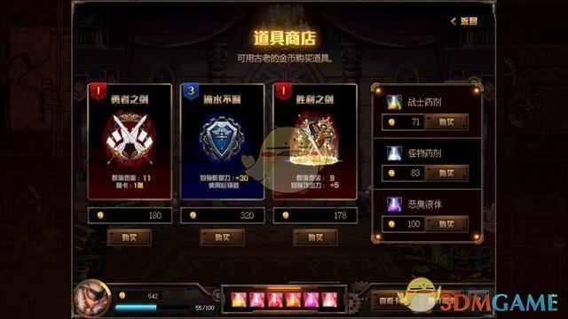 在蓝色图标回合是商店,我们再商店中可以购买药剂,需要古老的硬币
