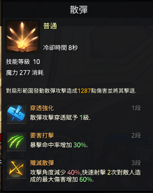 第一层是增伤,增暴击和将敌人推远,这里我建议大家点暴击,因为是一般技能,就算再增伤也是无补于事,还不如增加暴击,适当打出暴击伤害,获得收益更大,至于将敌人推远,个人认为PVP可考虑,pve还是不要了