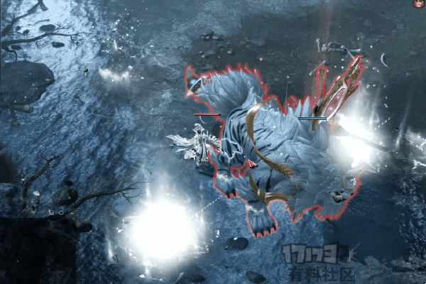 BOSS朝前方冲刺,速度较快,但范围不大,很容易躲避。