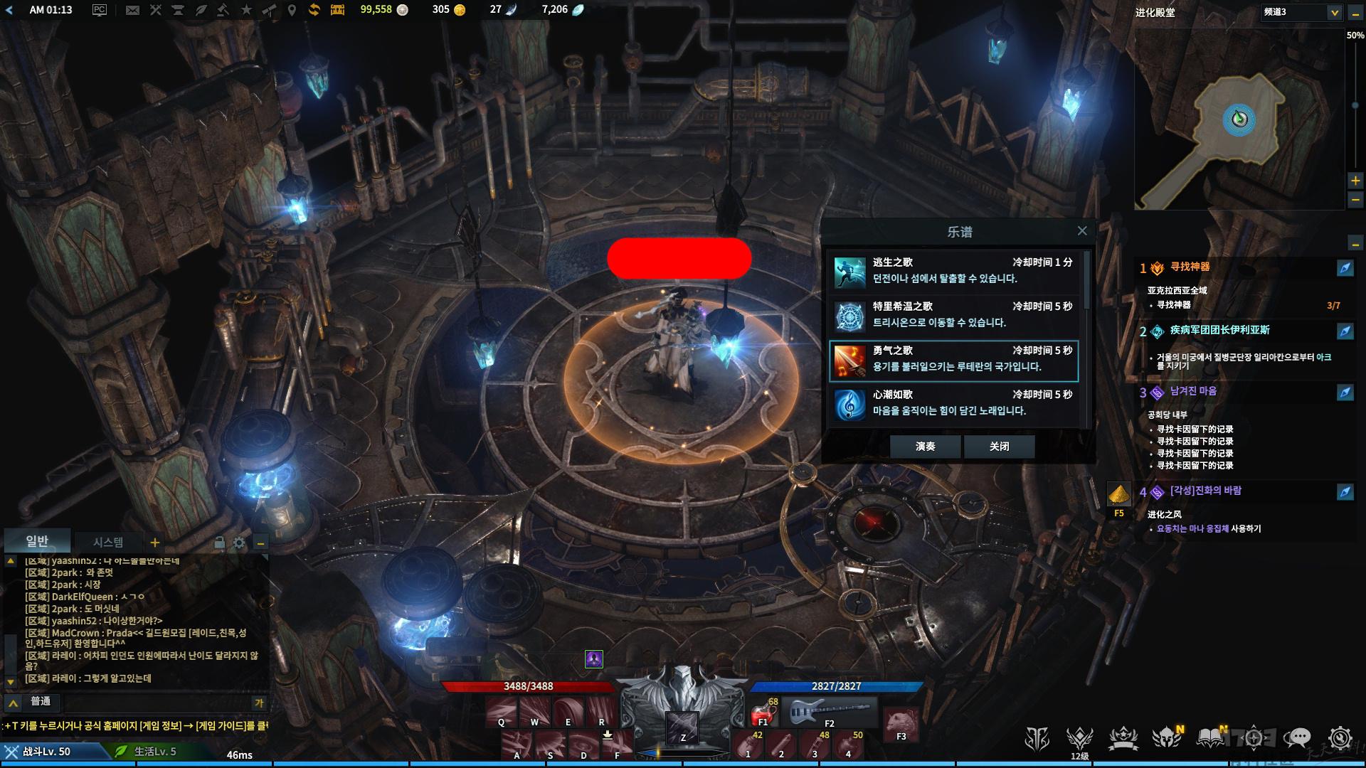 任务做完后 回到休特仑 进化殿堂然后叫你演奏勇气之歌看图
