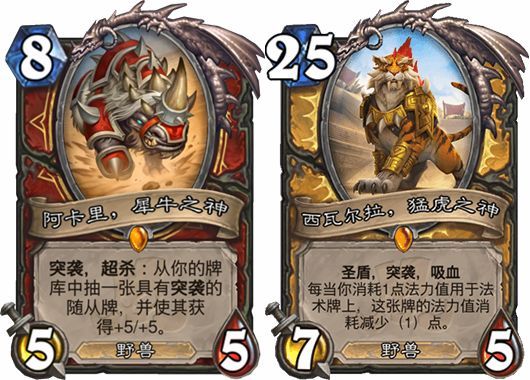 接着在设计的时候就会像要用什么方式来呈现。洛阿神是非常强大的存在,如果当成传说随从的话那一定也是非常的强。我们现在已经公布了九个洛阿神,其中包括犀牛之神,在超杀之后可以直接抽出一个有突袭的随从,还会赋予它+5/+5的效果,或是最早公开的猛虎之神,基本上可以看到,洛阿神都是非常强大的随从。但其实还有第10只,但他太邪恶了,所以他没有办法说代表某一队或是某一个职业,那第10只就是前面有提到的夺魂者哈卡。
