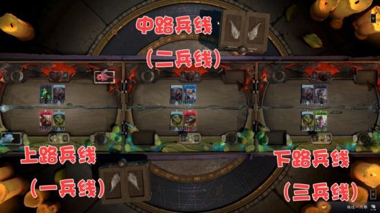 首先我们可以看到,摆在我们面前的是三个棋盘,分别对应着上路兵线中路兵线和下路兵线。