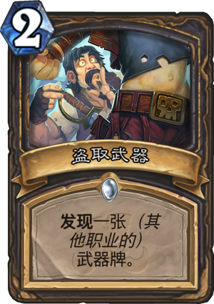 盗贼普通法术:盗取武器。亏2费过一张武器,发现的三选一,上限很高,下限不低,然而贼并且有配合的套路。最适合的剽窃贼在天梯不入流,自己本身也要挂吸血刀,奇数贼费用相性不合,奇迹贼倒是可以配合古典的加基森过牌,谨慎看好。