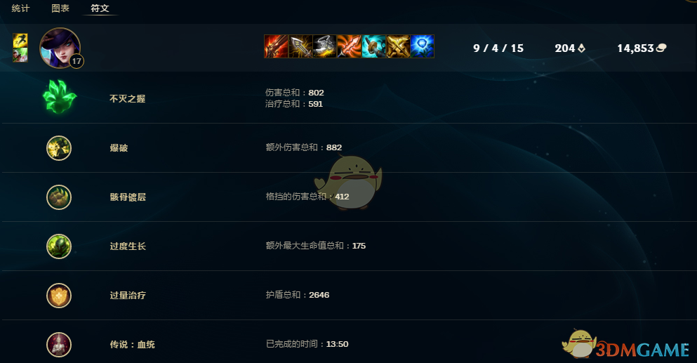 这是一场不灭女警的对局详情,利用不灭之握、骸骨镀层、过量治疗、血统这四个符文,线上女警是不虚任何人的,就算不灭之握这个符文在远程英雄手上效果减半,但在对线时还是很厉害。把兵线压进塔里之后,找机会靠近防御塔打出爆破的效果,持续的消耗防御塔的血量,打破镀层,拿到金币奖励,以此来获得更好的发育。