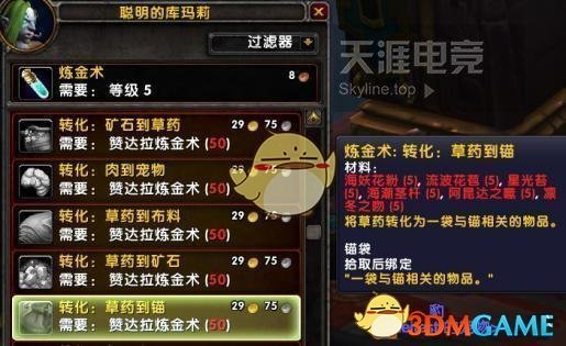 炼金新的转化,和之前的转化需要的等级一样,估计CD和产出的量也类似。