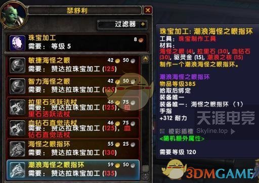 新的炼金饰品,100专业等级,385拾取绑定。